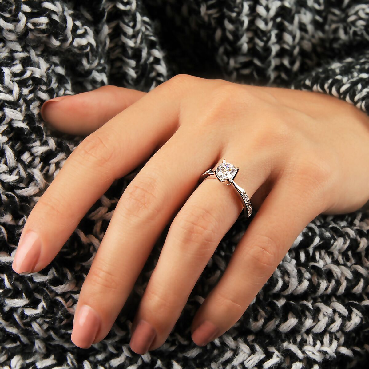 An elegant milgrain etched band of diamonds and sleek high polished gold tapers towards a brilliant center stone set in the LYRIA SIGNATURE CROWN. Available in Platinum, as well as 18K White, Yellow or Rose Gold.