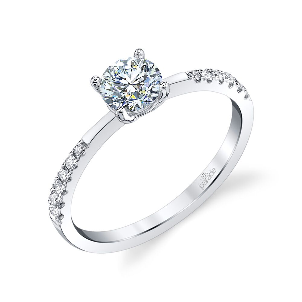 A gleaming band of diamonds and sleek high polished gold tapers towards a brilliant center stone in this design from the New Classic Bridal Collection. Available in Platinum, as well as 18K White, Yellow or Rose Gold.