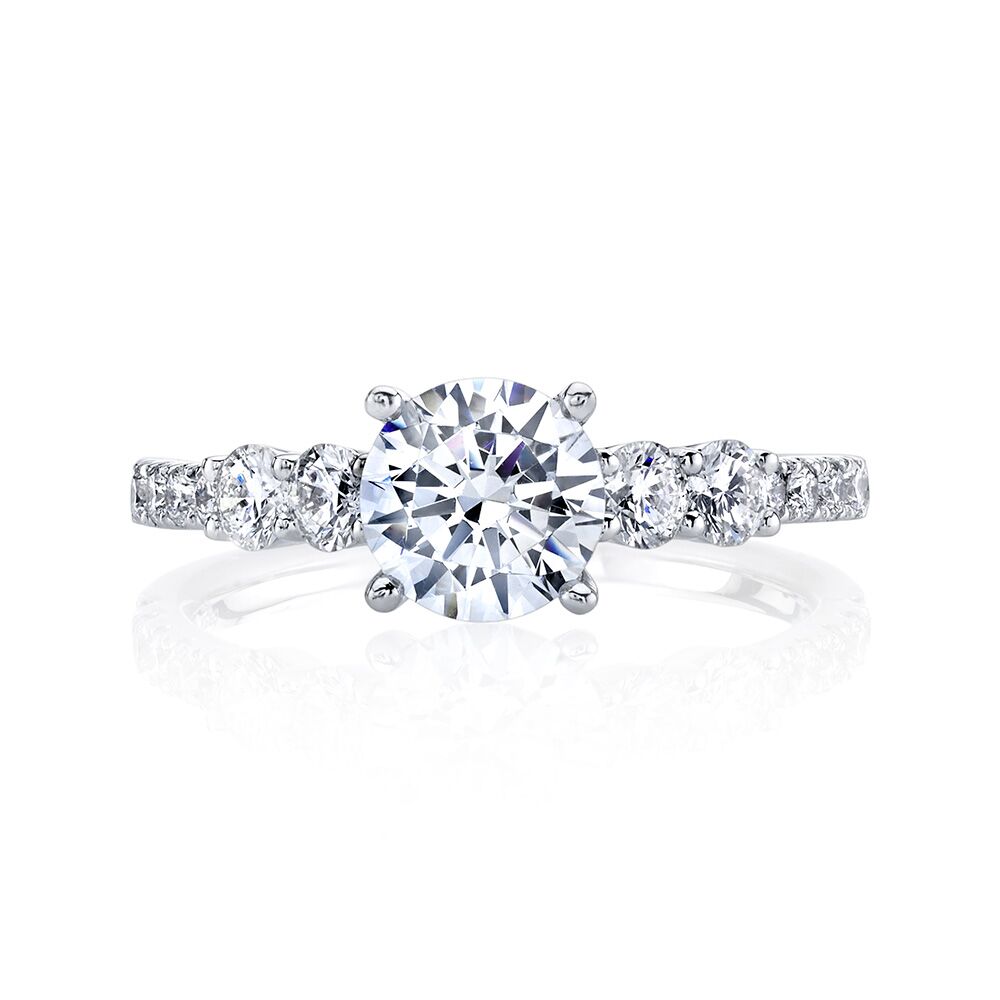 Stunning from every angle, brilliant diamonds accentuate a round center diamond in this timeless design from the New Classic Bridal Collection. Available in Platinum, as well as 18K White, Yellow or Rose Gold.