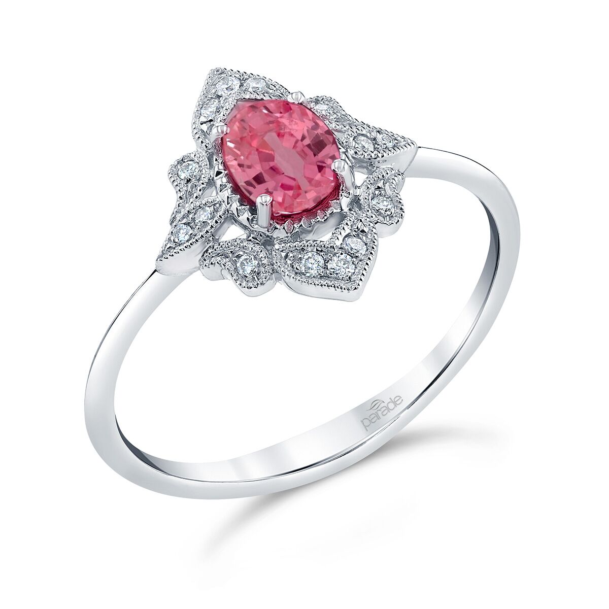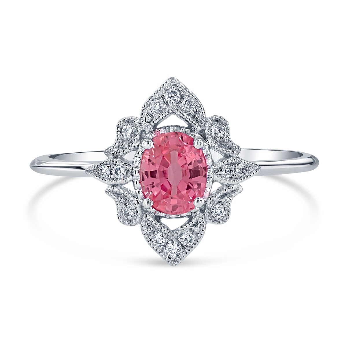 Embrace the timeless allure of Art Deco with this vintage ring, adorned with a beautiful light pink sapphire. A true embodiment of sophistication and style. Available in Platinum, as well as 18K White, Yellow or Rose Gold.