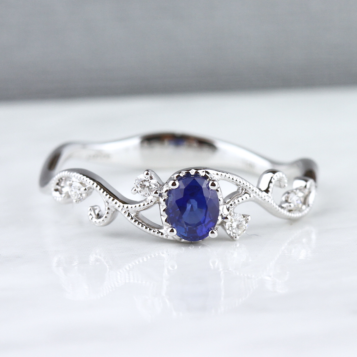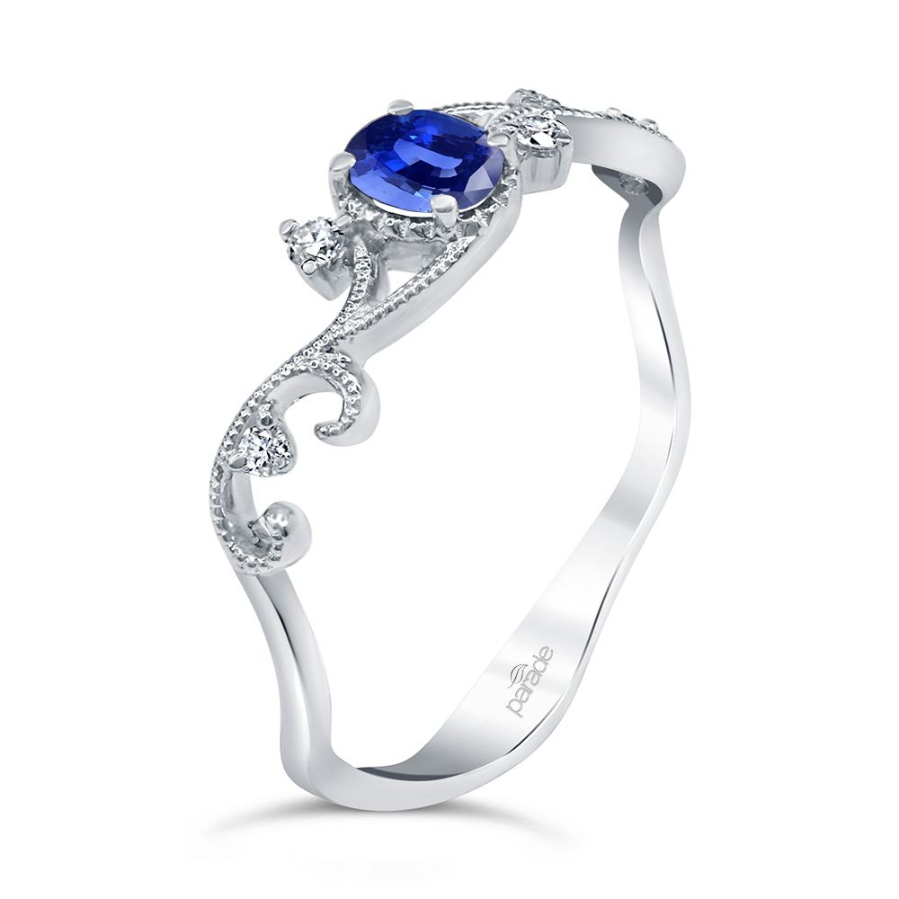 Elegant ring intertwined with nature’s delicate touch featuring a beautiful royal blue sapphire. Available in Platinum, as well as 18K White, Yellow or Rose Gold.
