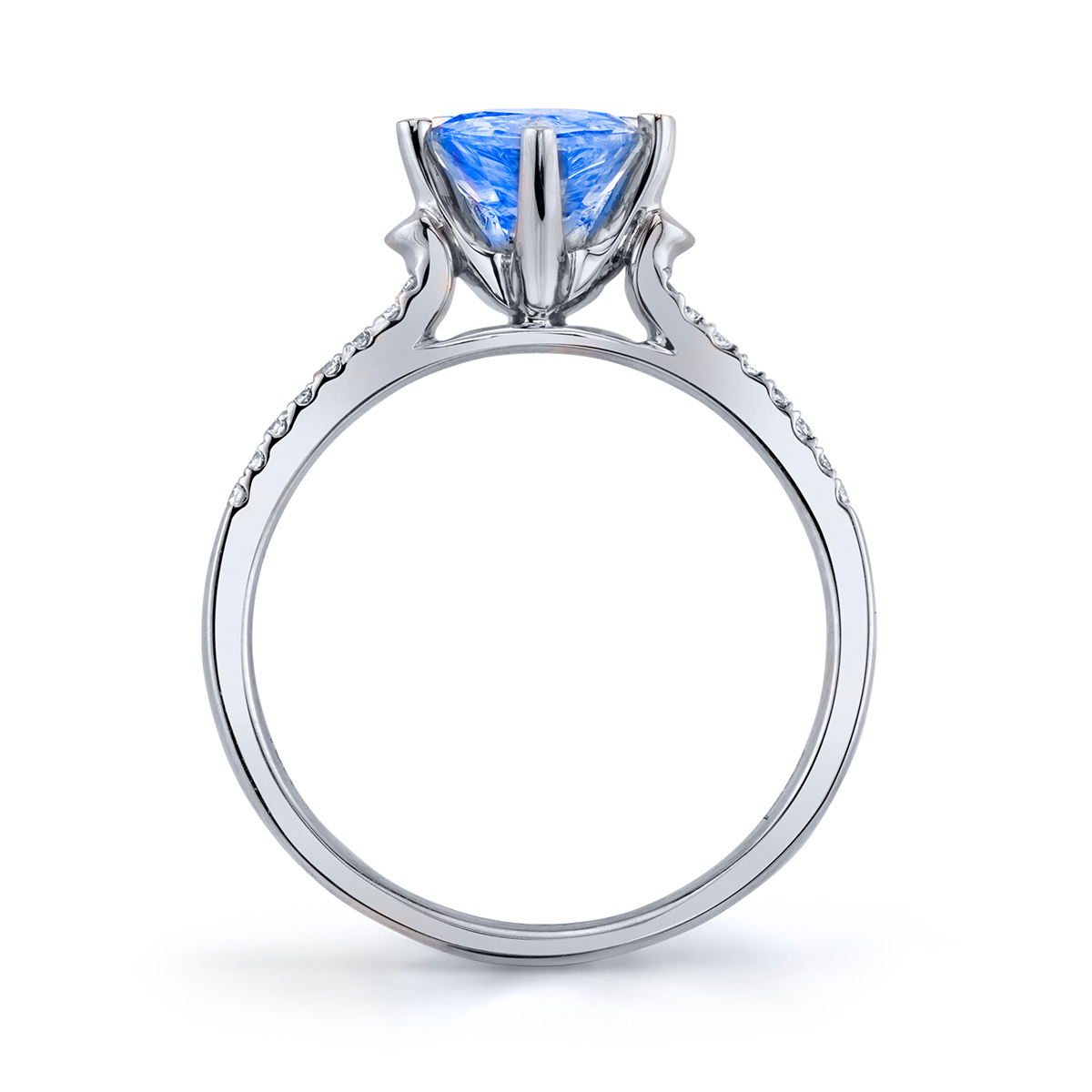From the Parade in Color collection, a vibrant pear shaped blue sapphire shines atop a diamond band in 18k white gold. Available in Platinum, as well as 18K White, Yellow or Rose Gold.