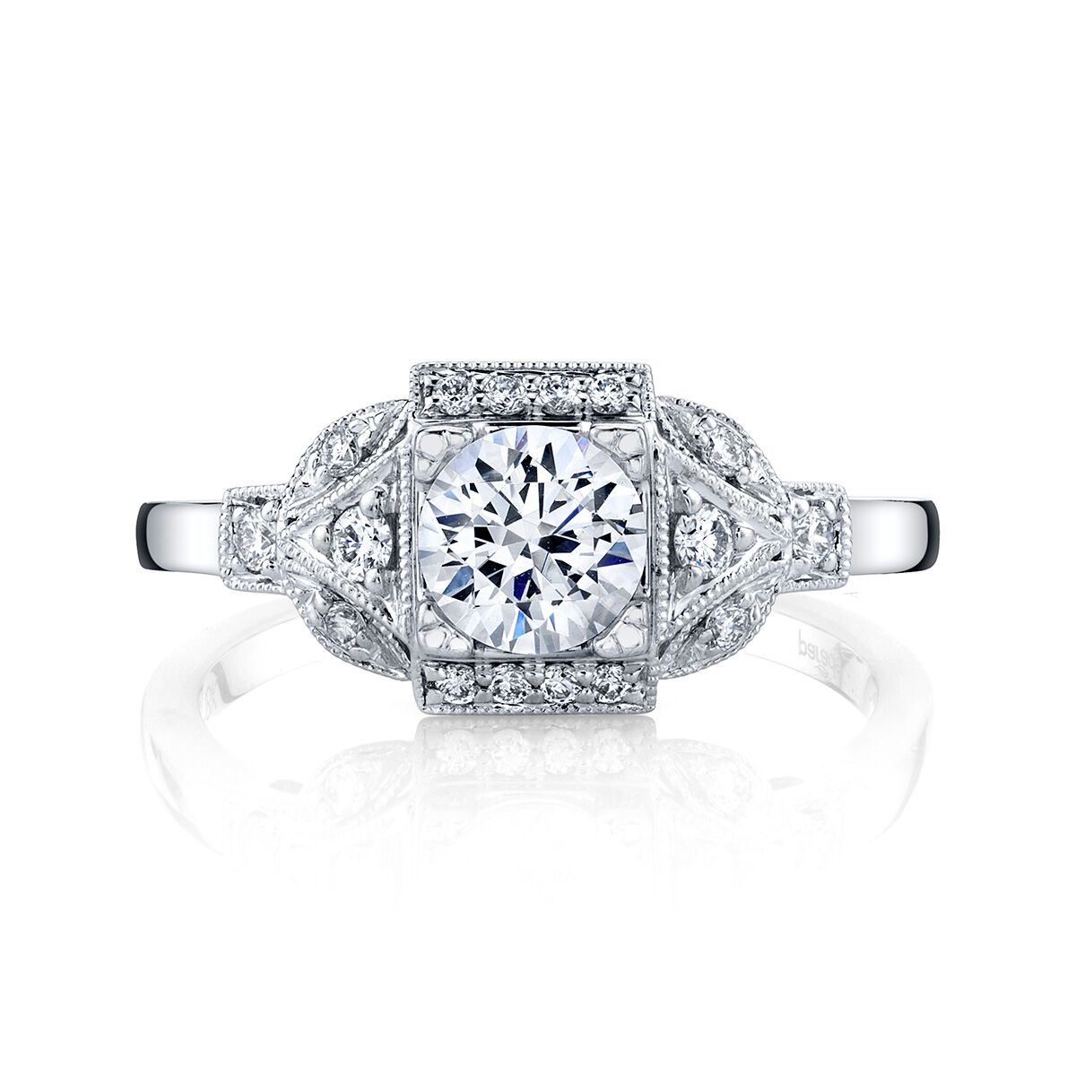 A new vintage inspired halo ring complete with intricate milgrain detailing from the Hera Bridal Collection. Available in Platinum, as well as 18K White, Yellow or Rose Gold.