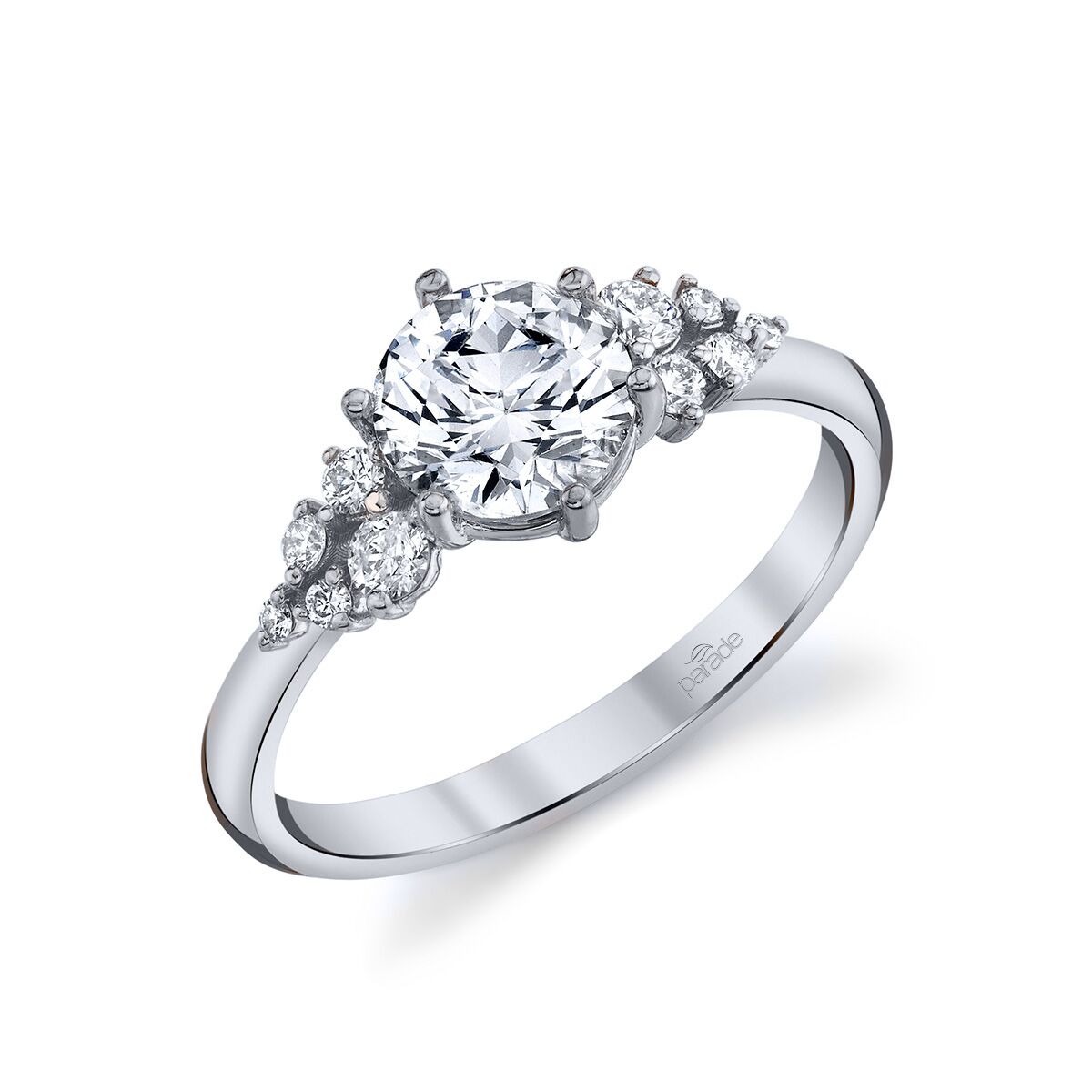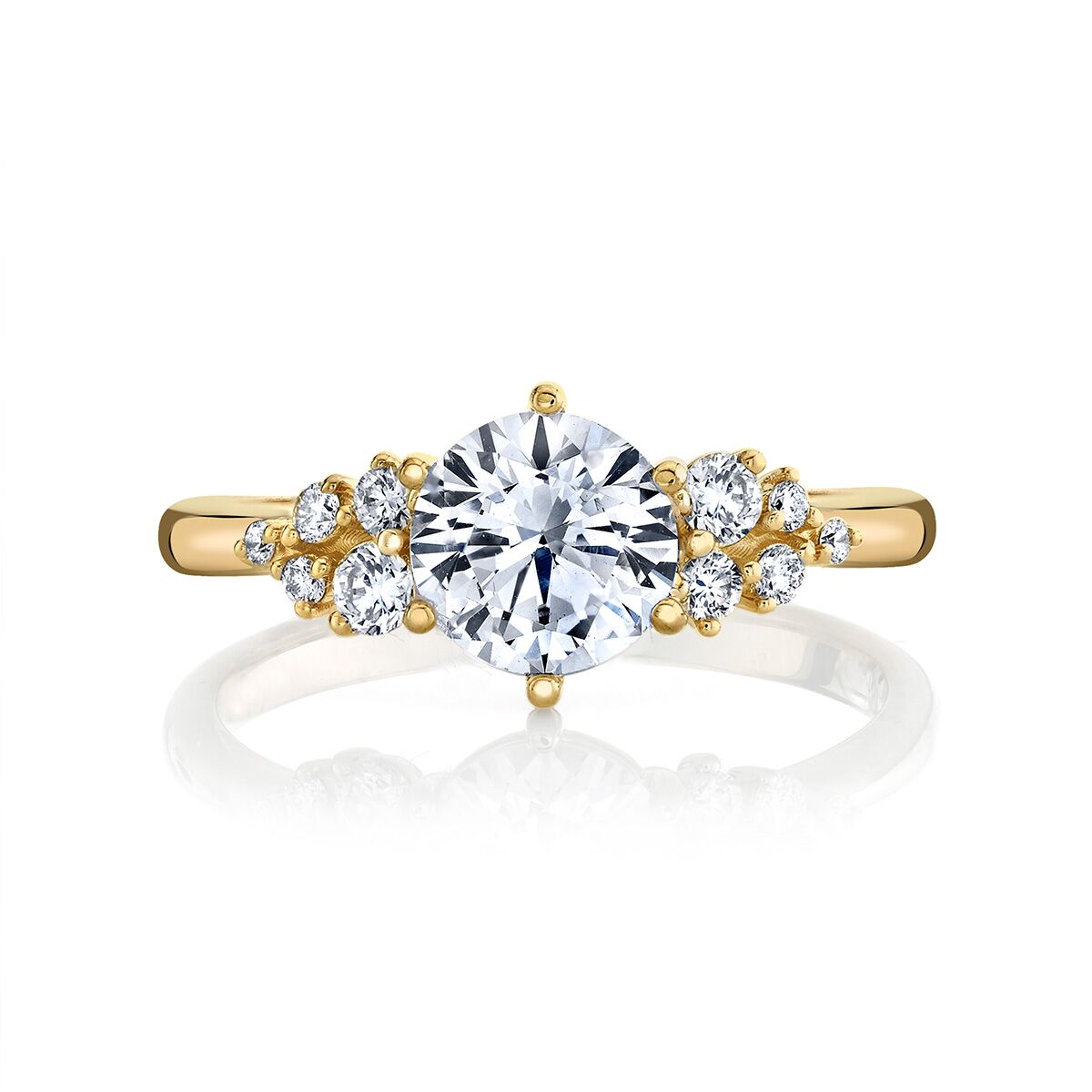 A brilliant center stone floats atop a 6-prong crown, accentuated by a variety of smaller diamonds on each side in this stunning design from the Hemera Bridal Collection. Available in Platinum, as well as 18K White, Yellow or Rose Gold.