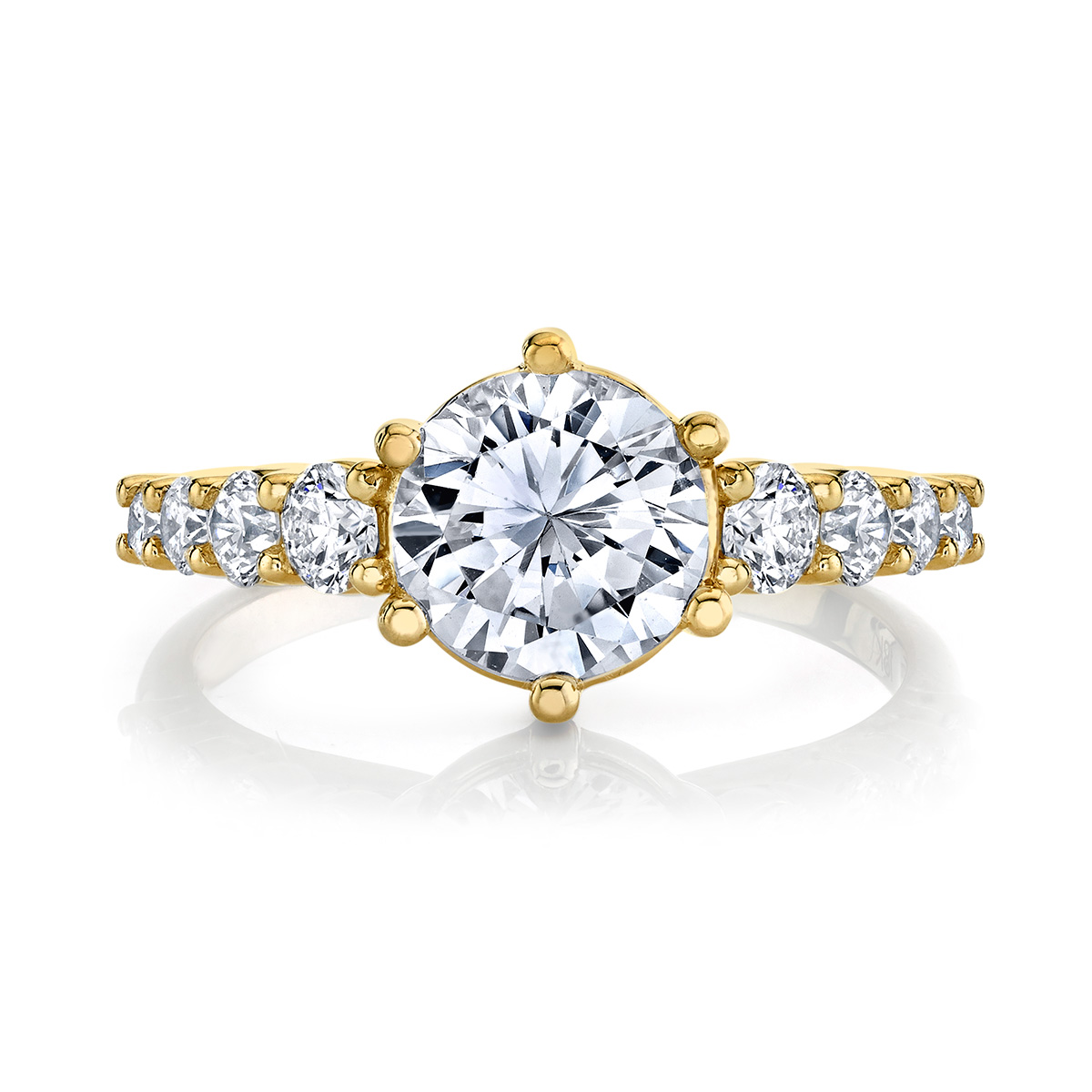 Stunning from every angle, brilliant diamonds along the shank accentuate a round center diamond in this timeless design from the New Classic Bridal Collection. Available in Platinum, as well as 18K White, Yellow or Rose Gold.