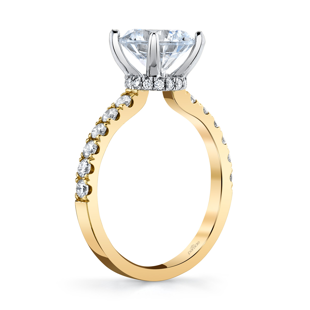 This modern classic is sculpted in rich, warm gold and embraced by a lustrous white hidden halo. Available in Platinum, as well as 18K White, Yellow or Rose Gold.