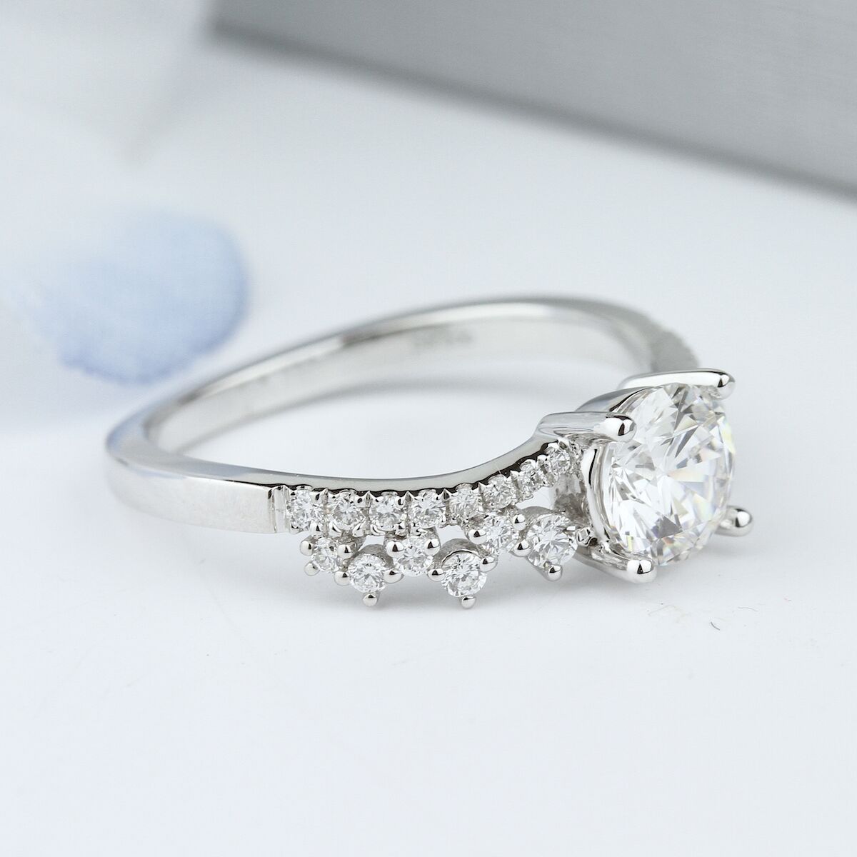 This precious tiara-inspired design features a sprinkling of diamonds along a curved diamond band. Available in Platinum, as well as 18K White, Yellow or Rose Gold.
