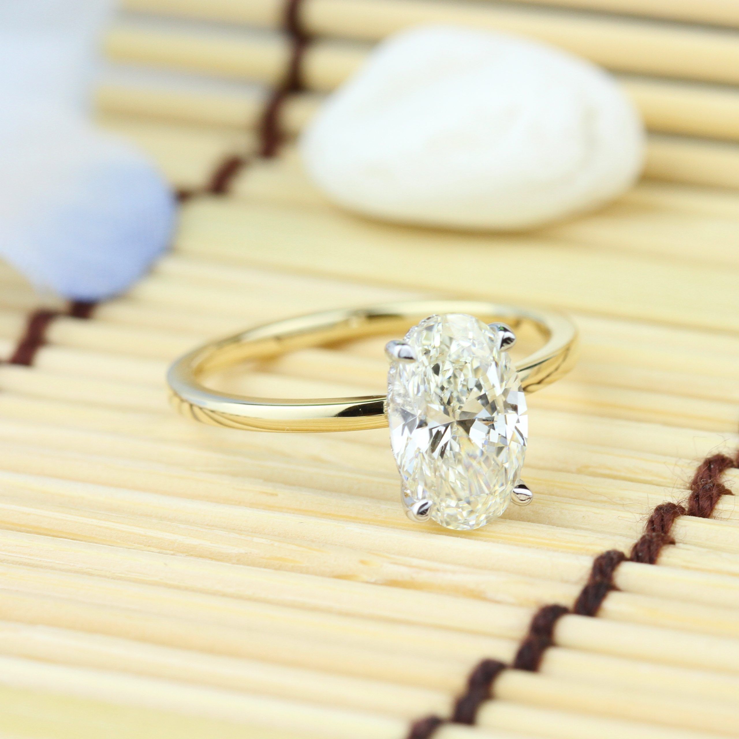 An Oval brilliant center diamond is cradled by a diamond accented basket and lifted above a polished band in this modern classic. Available in Platinum, as well as 18K White, Yellow or Rose Gold.