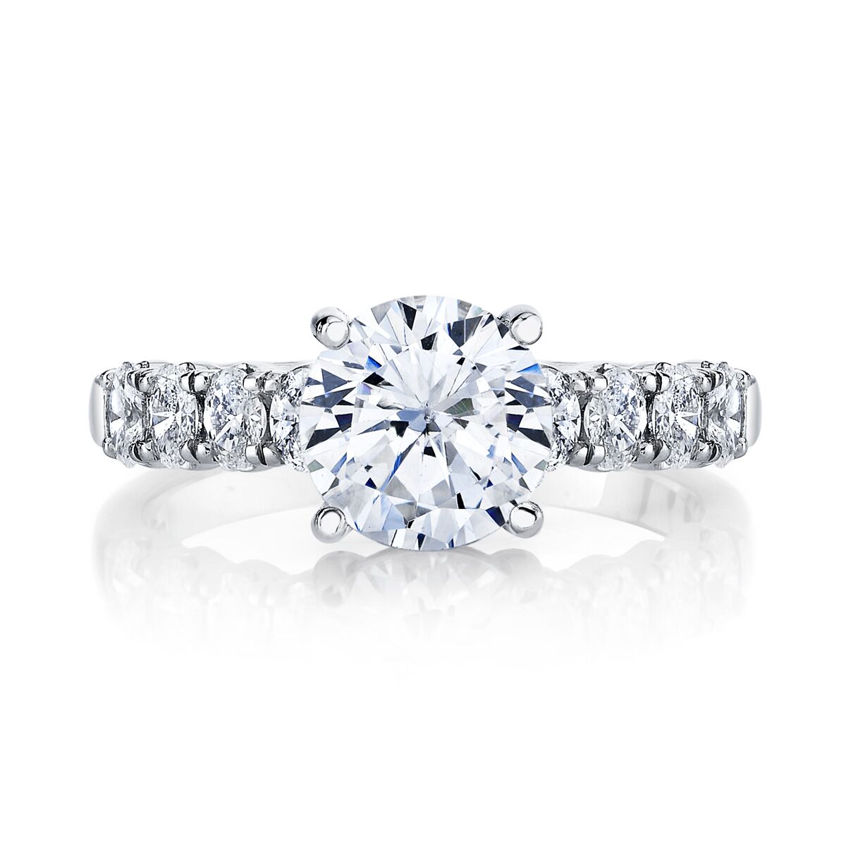 Classic Oval Side Diamond Engagement Ring Available in Platinum, as well as 18K White, Yellow or Rose Gold.