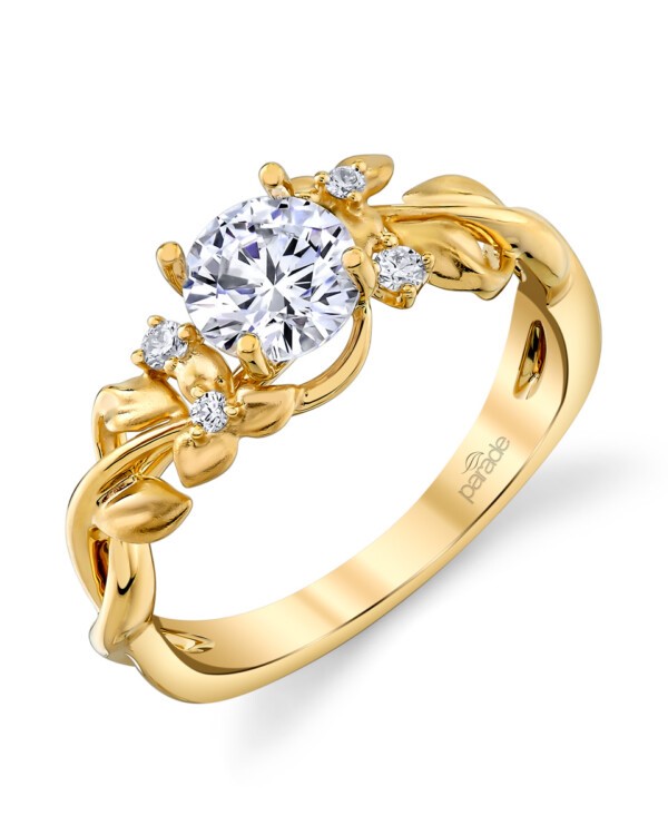 PARADE LYRIA Lady’s Yellow 14 Karat Engagement Ring Size 6.5 With 4=0.07Tw Natural Round Brilliant Cut Diamonds–Supports Oval 7×5 center stone
