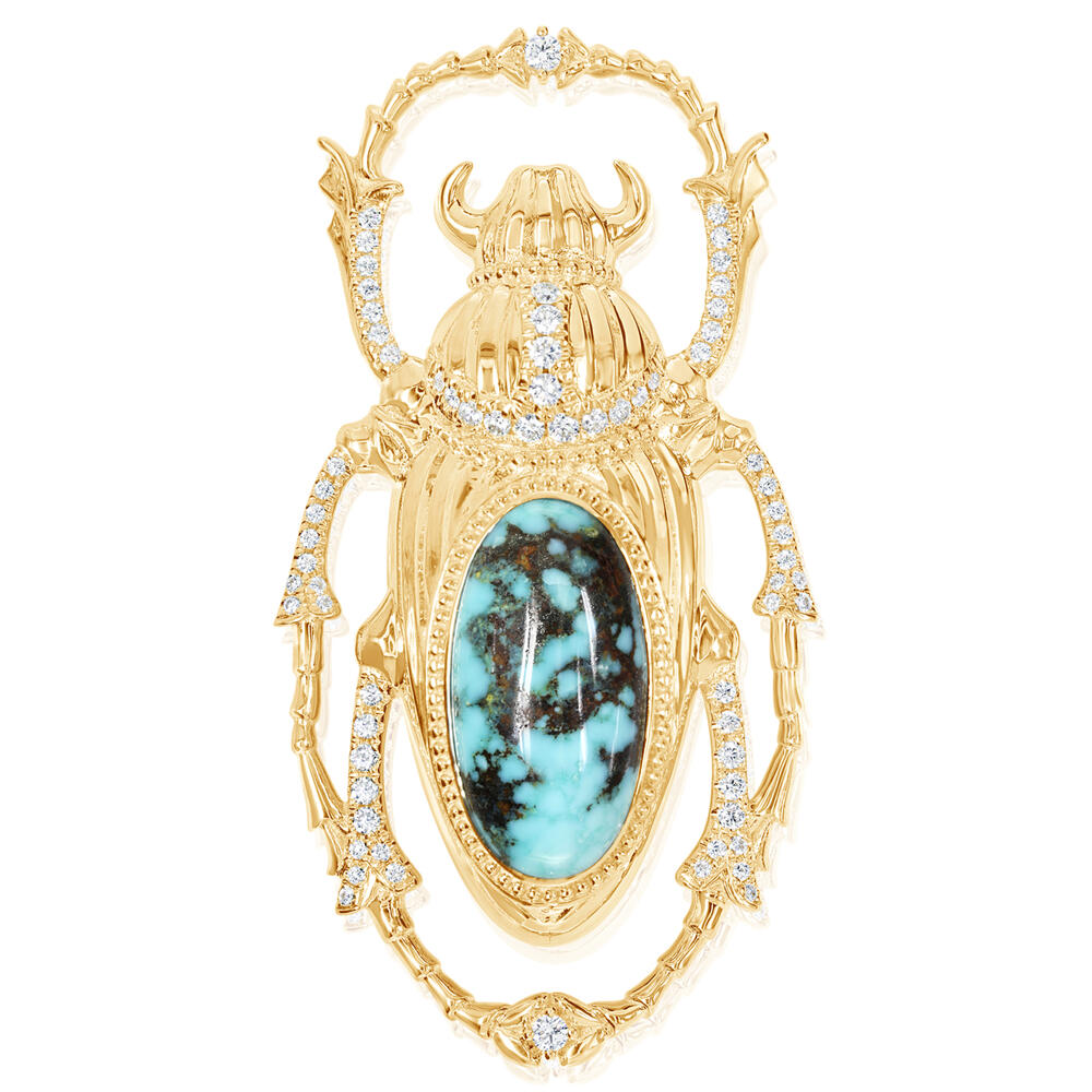 14K Yellow Gold Arizona Turquoise/Diamond Scarab Brooch. This is a one of a kind piece. Total gem weight: 8.15 ct.