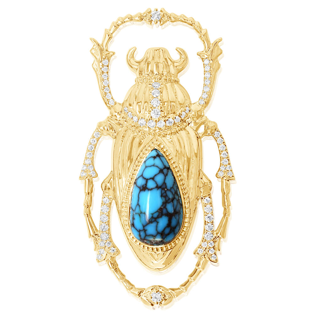 14K Yellow Gold Egyptian Turquoise/Diamond Scarab Brooch. This is a one of a kind piece. Total gem weight: 8.76 ct.