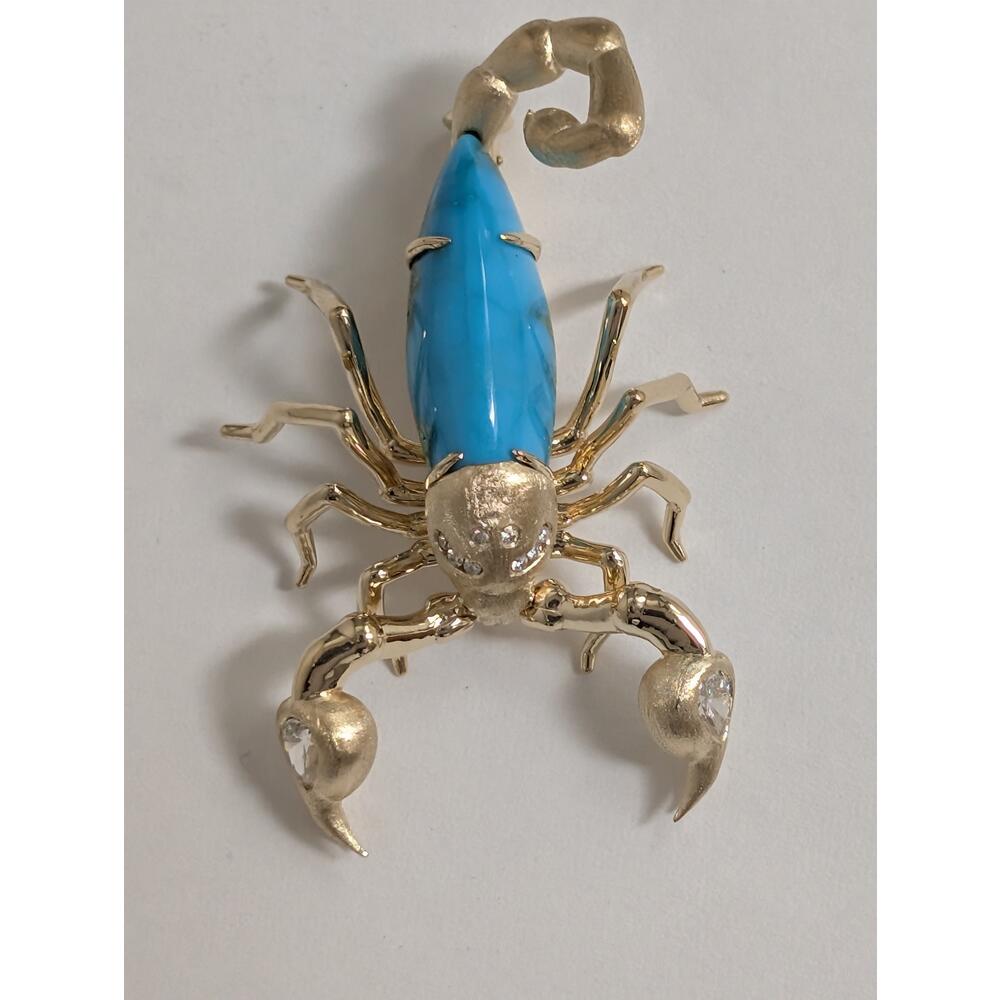 14K Yellow Gold Arizona Turquoise/Diamond Scorpion Brooch. This is a one of a kind piece. Total gem weight: 5.61 ct.