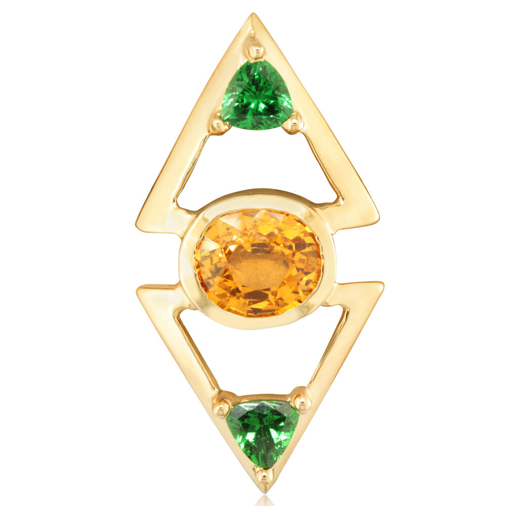 14K Yellow Gold Mandarin Garnet/Tsavorite Lapel Pin with Yellow Plated Post and Back. This is a one of a kind piece. Total gem weight: 4.10 ct.
