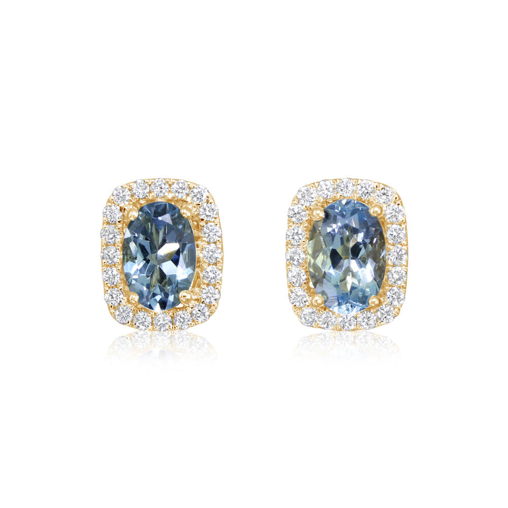 14K Yellow Gold Aquamarine/Diamond Earrings. Total gem weight: 0.76 ct.