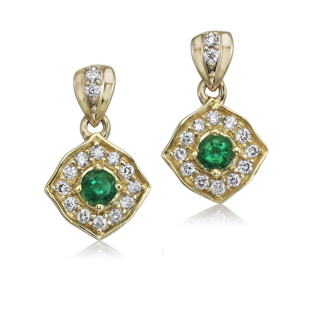 14K Yellow Gold Emerald/Diamond Earrings. Total gem weight: 0.18 ct.