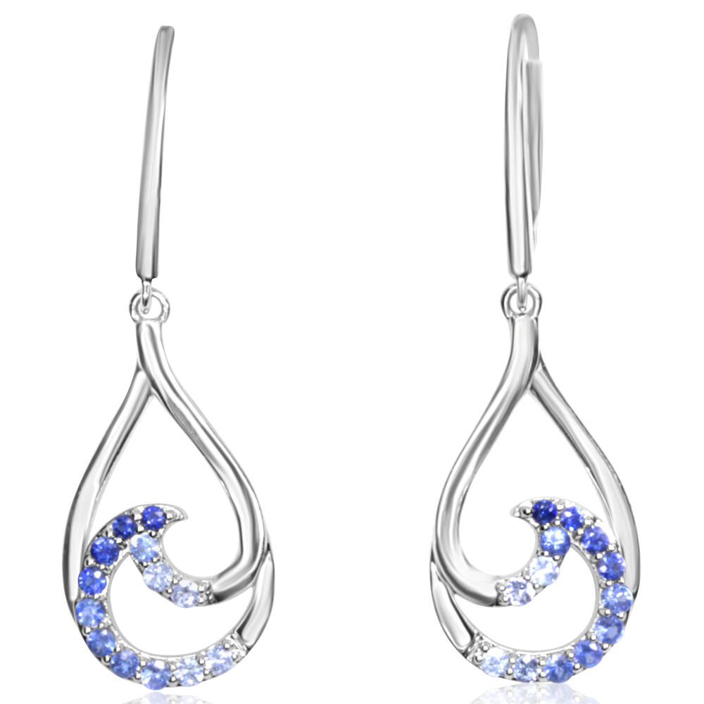 14K White Gold Graduated Blue Sapphire Earrings. Total gem weight: 0.56 ct.