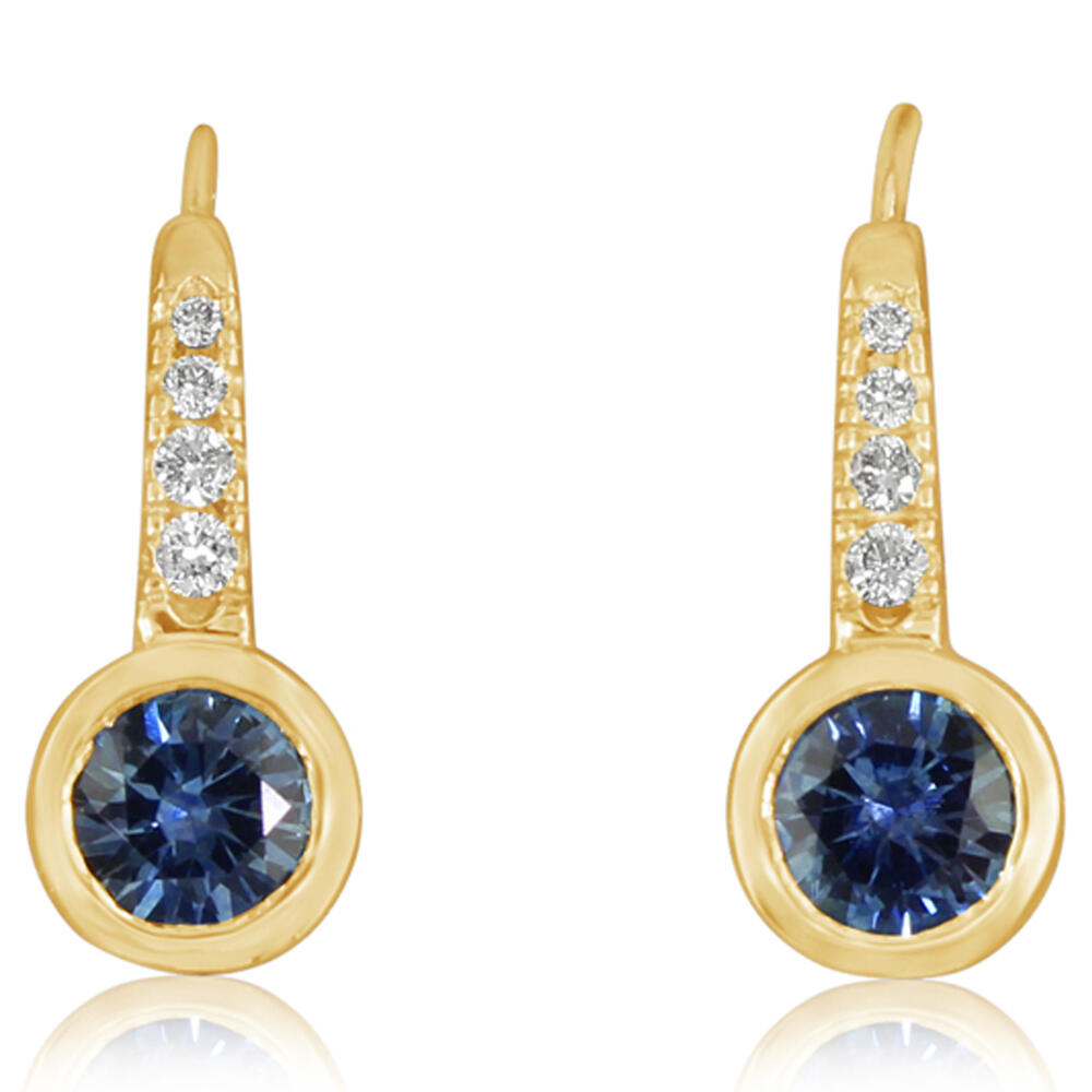 14K Yellow Gold Montana Sapphire/Diamond Earrings. Total gem weight: 1.18 ct.