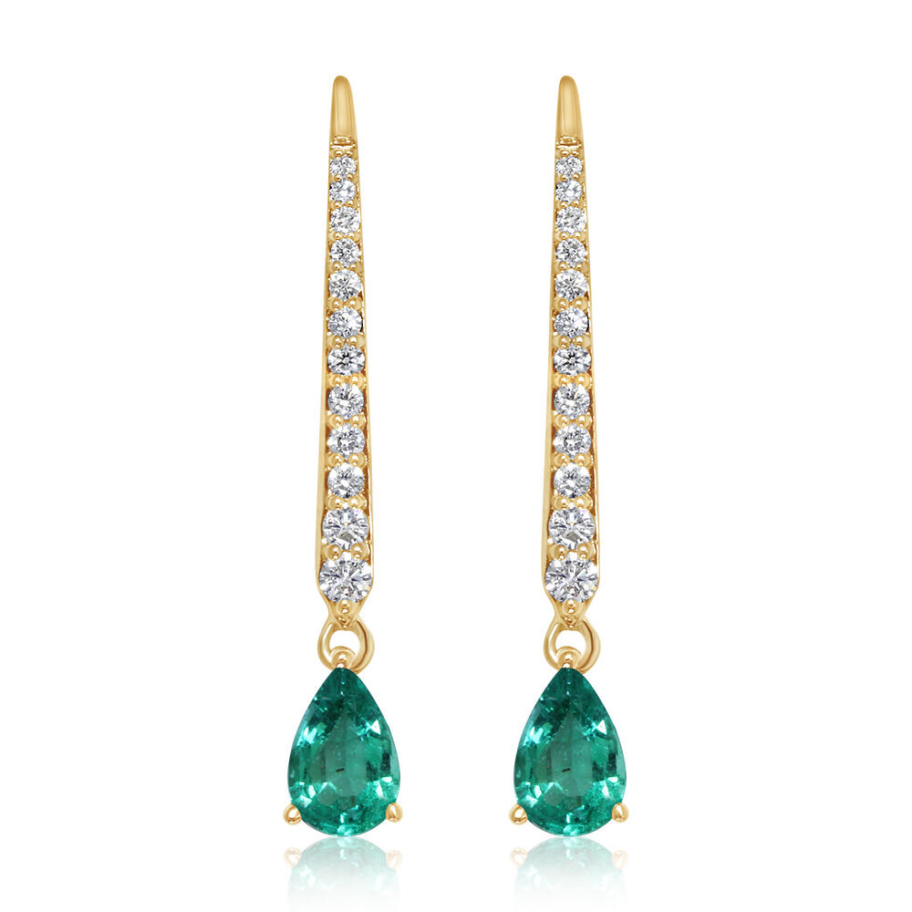14K Yellow Gold Emerald/Diamond Earrings. Total gem weight: 0.80 ct.