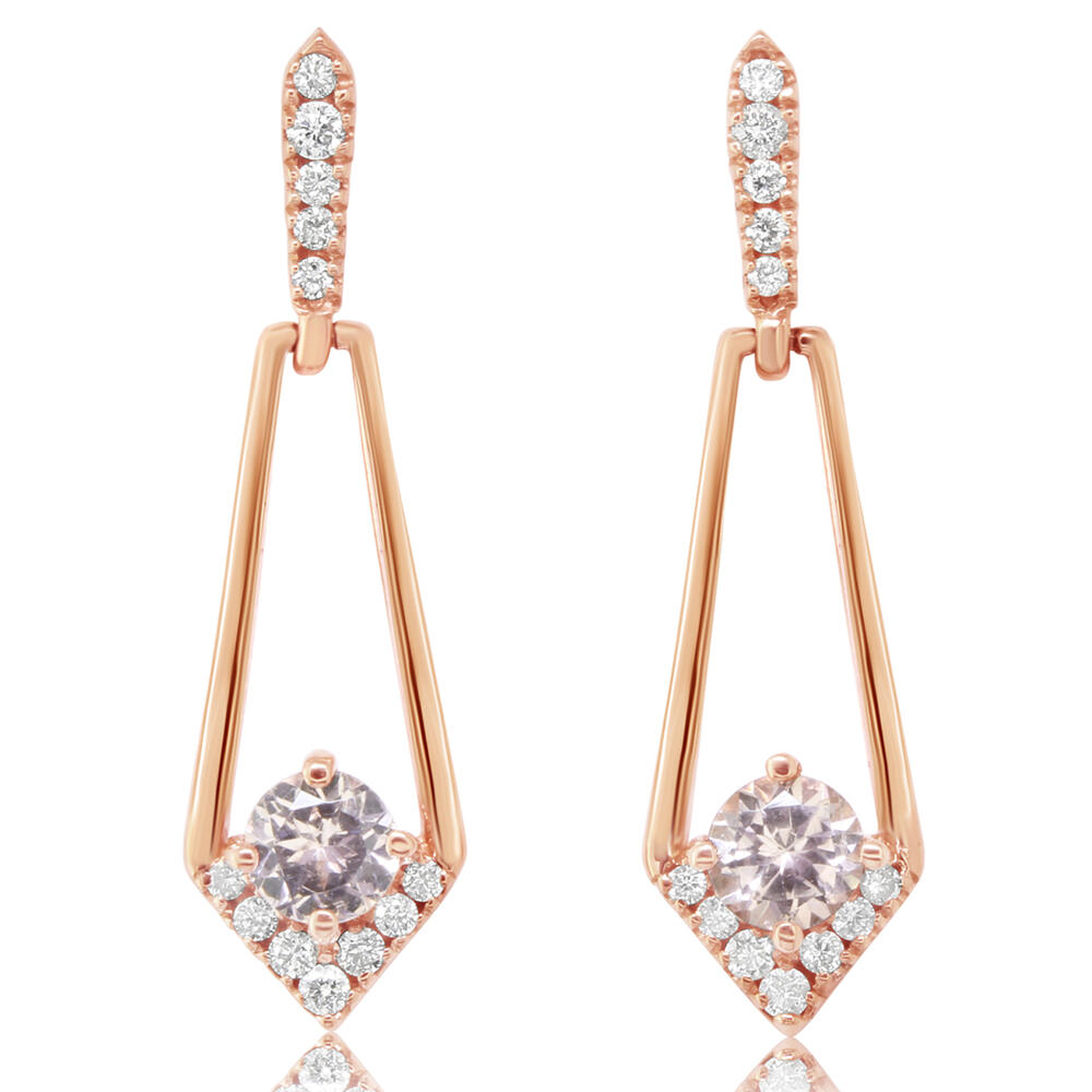 14K Rose Gold Lotus Garnet/Diamond Earrings. Total gem weight: 0.60 ct.