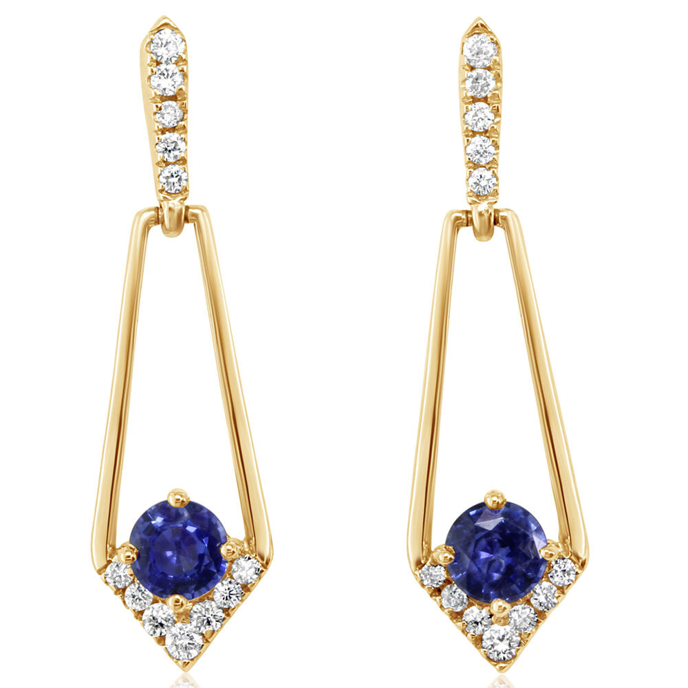 14K Yellow Gold Sapphire/Diamond Earrings. Total gem weight: 0.64 ct.
