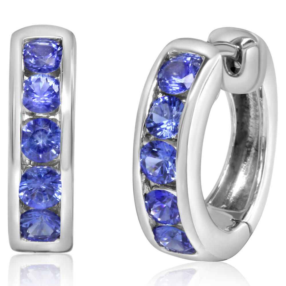 14K White Gold Sapphire Hoop Earrings. Total gem weight: 1.50 ct.