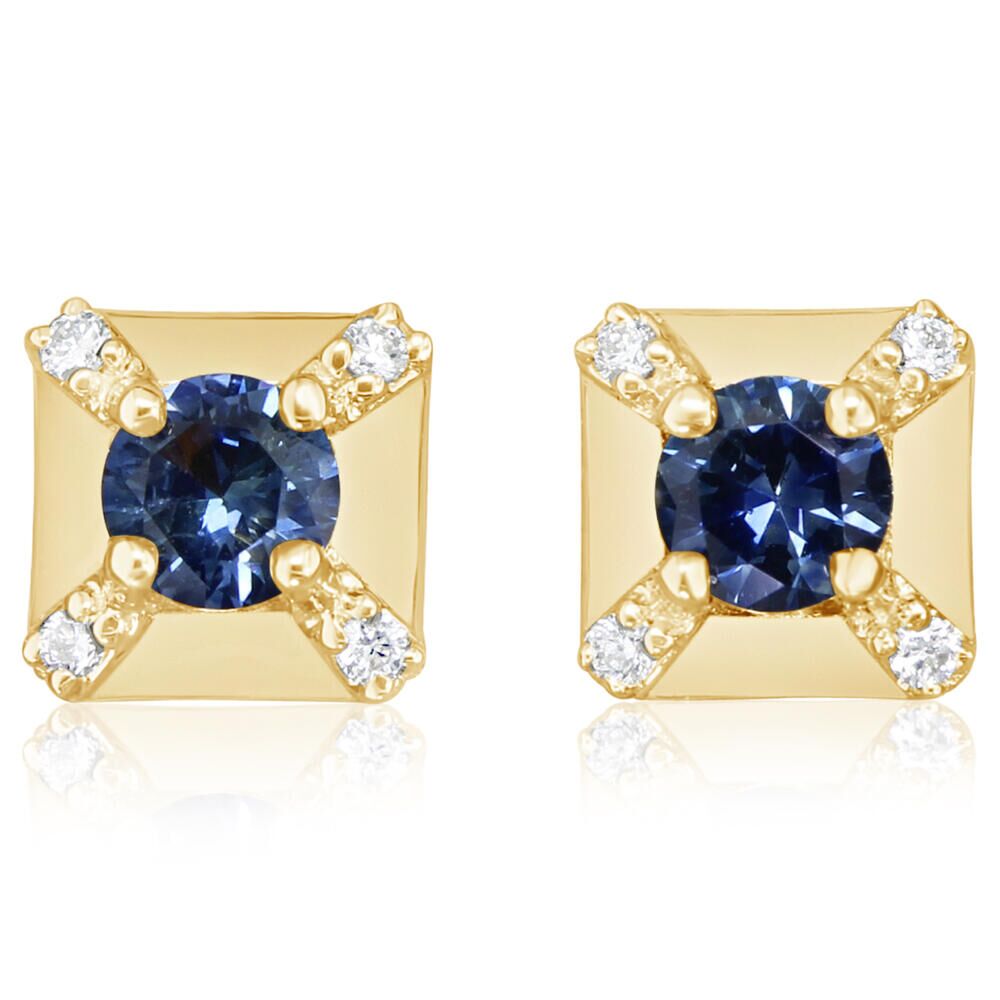 14K Yellow Gold Montana Sapphire/Diamond Earrings. Total gem weight: 0.44 ct.