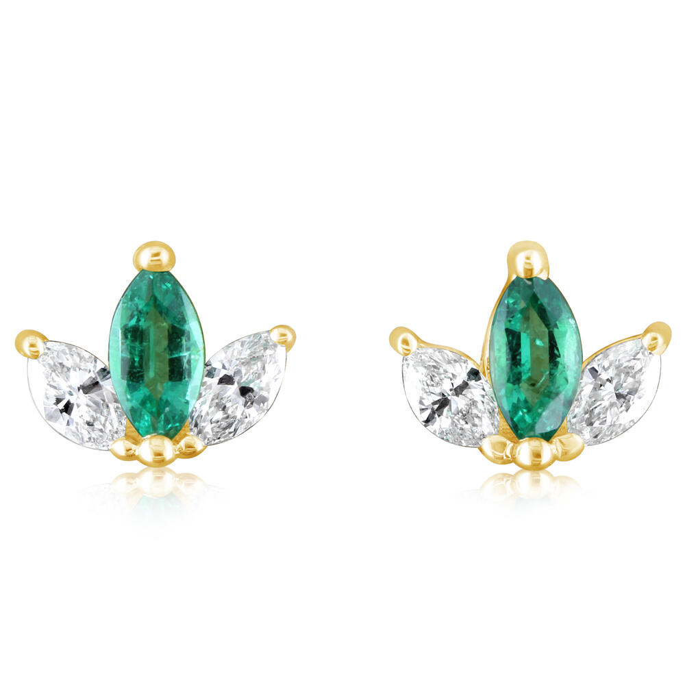 14K Yellow Gold Emerald/Diamond Earrings. Total gem weight: 0.22 ct.