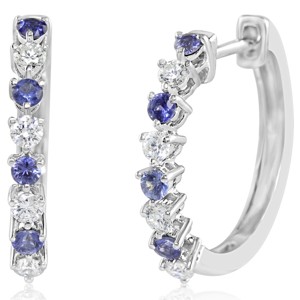 14K White Gold Blue Sapphire/Diamond Hoop Earrings. Total gem weight: 0.32 ct.