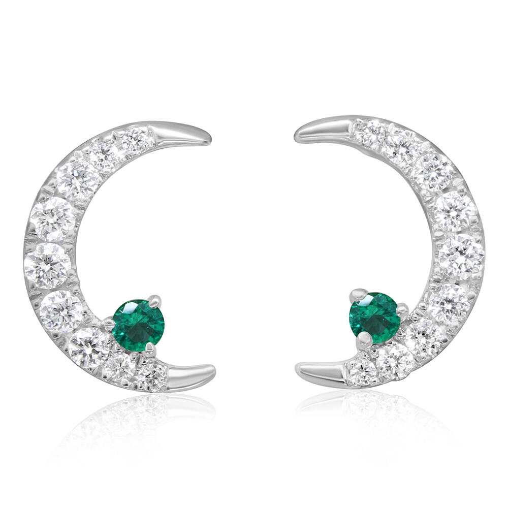 14K White Gold Emerald/Diamond Moon Earrings. Total gem weight: 0.03 ct.