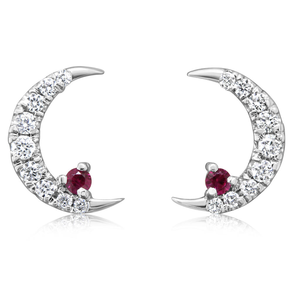 14K White Gold Ruby/Diamond Moon Earrings. Total gem weight: 0.06 ct.
