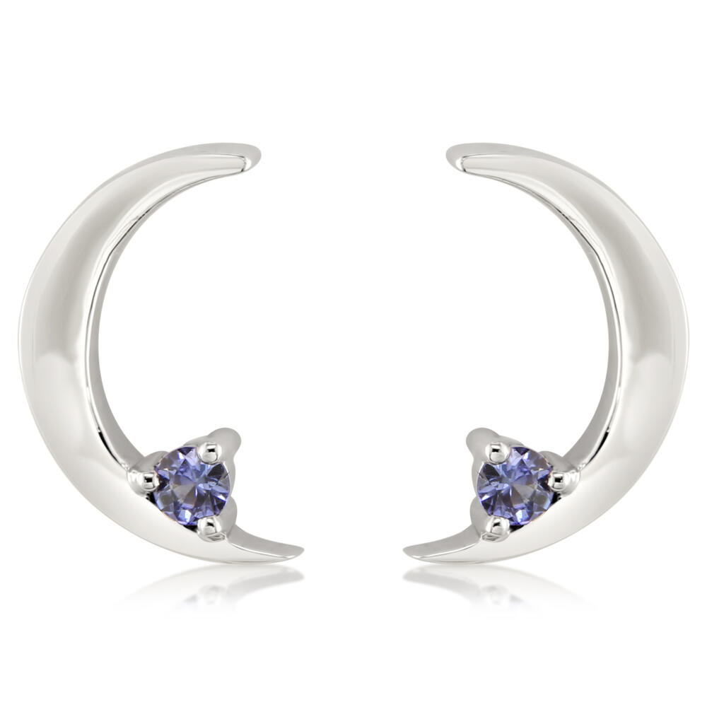 14K White Gold Sapphire Moon Earrings. Total gem weight: 0.04 ct.
