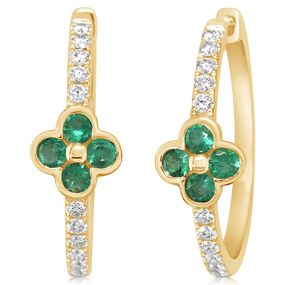 14K Yellow Gold Emerald/Diamond Ear. Total gem weight: 0.64 ct.
