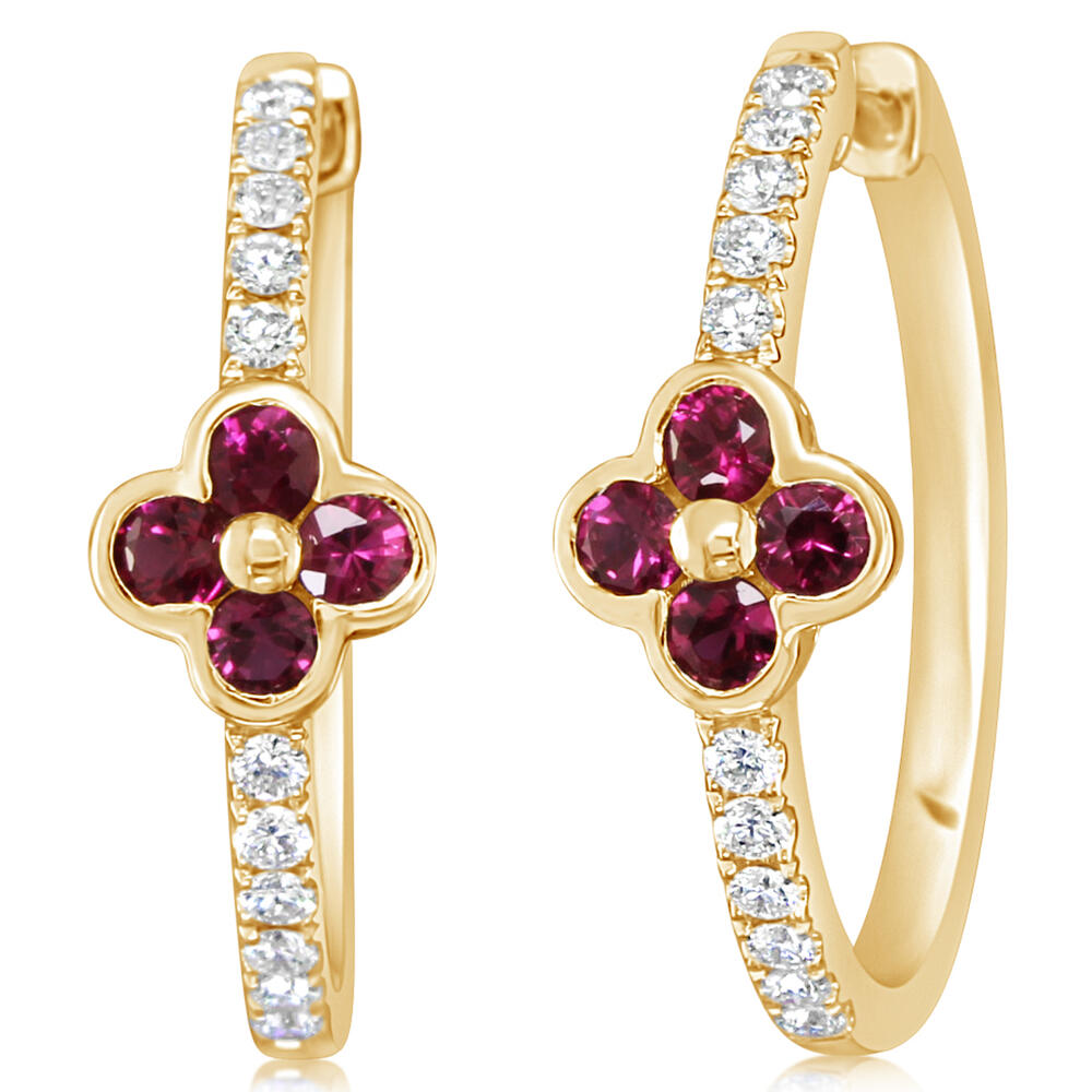 14K Yellow Gold Ruby/Diamond Earrings. Total gem weight: 0.80 ct.