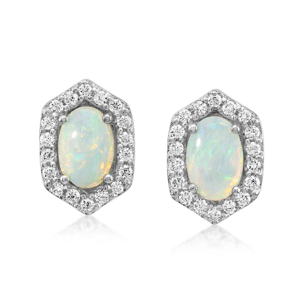 14K White Gold Australian Opal/Diamond Earrings. Total gem weight: 0.22 ct.