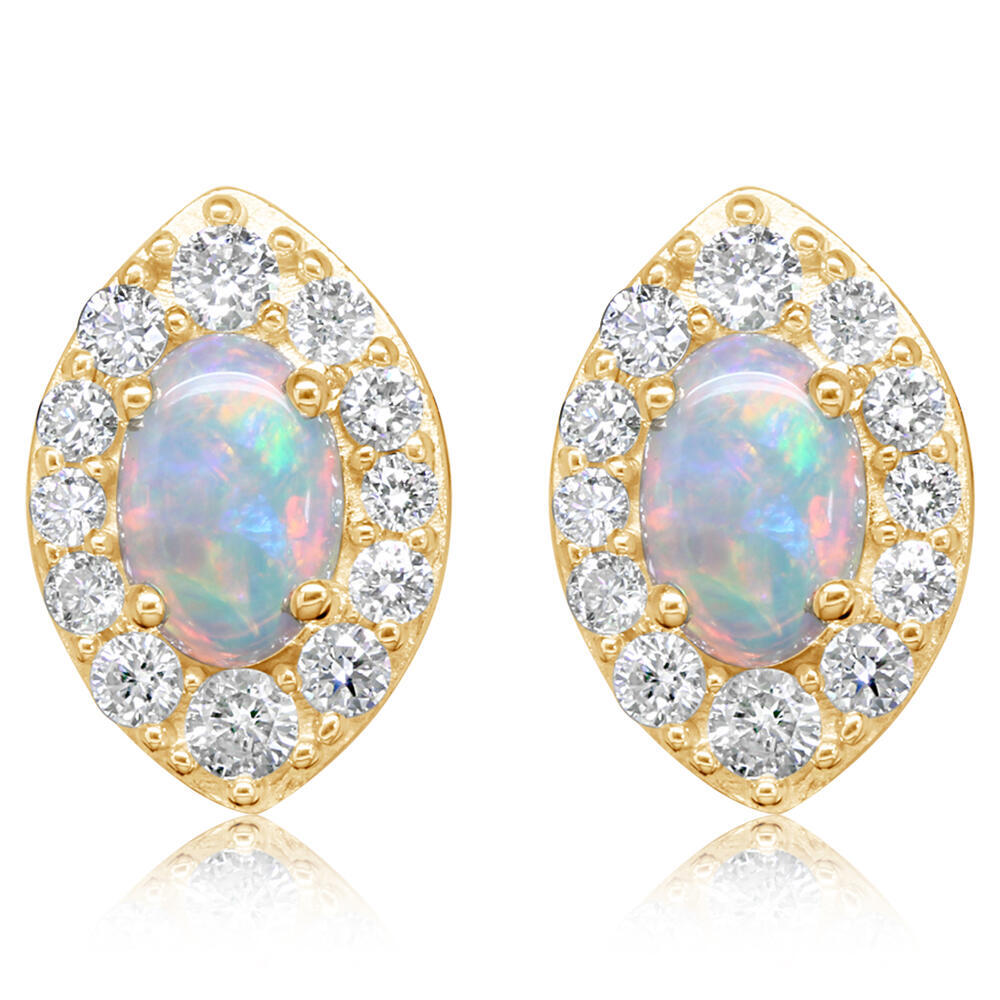 14K Yellow Gold Australian Opal/Diamond Earrings. Total gem weight: 0.54 ct.