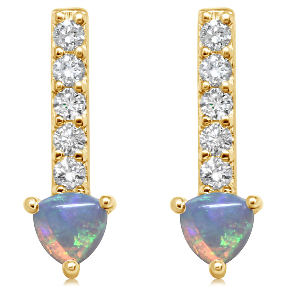 14K Yellow Gold Australian Opal/Diamond Earrings. Total gem weight: 0.24 ct.