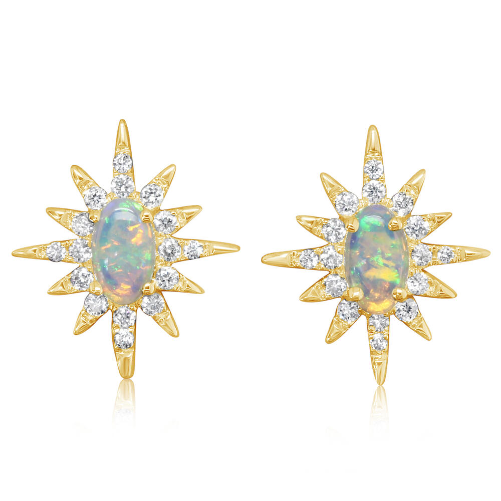 14K Yellow Gold Austrailian Opal/Diamond Star Earrings. Total gem weight: 0.30 ct.