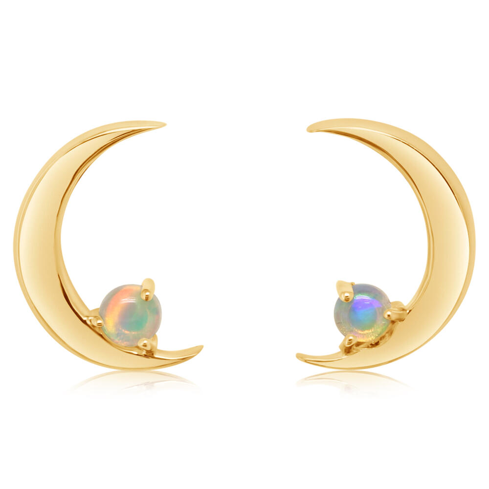 14K Yellow Gold Australian Opal Moon Earrings. Total gem weight: 0.05 ct.