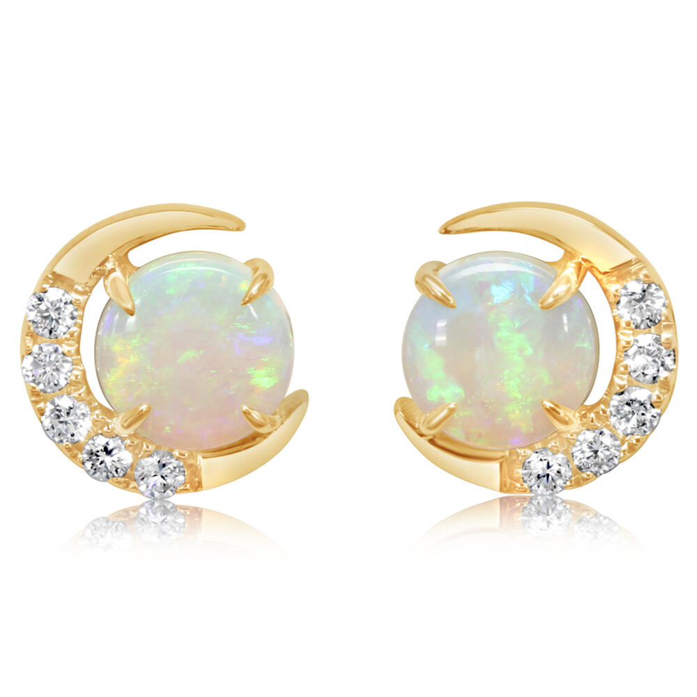 14K Yellow Gold Australian Opal/Diamond Moon Earrings. Total gem weight: 0.90 ct.