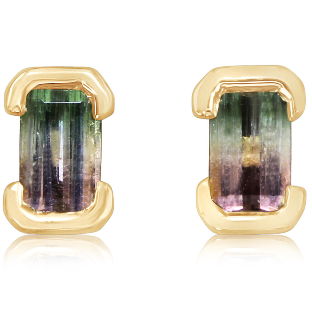 14K Yellow Gold Bi-Color Tourmaline Earrings