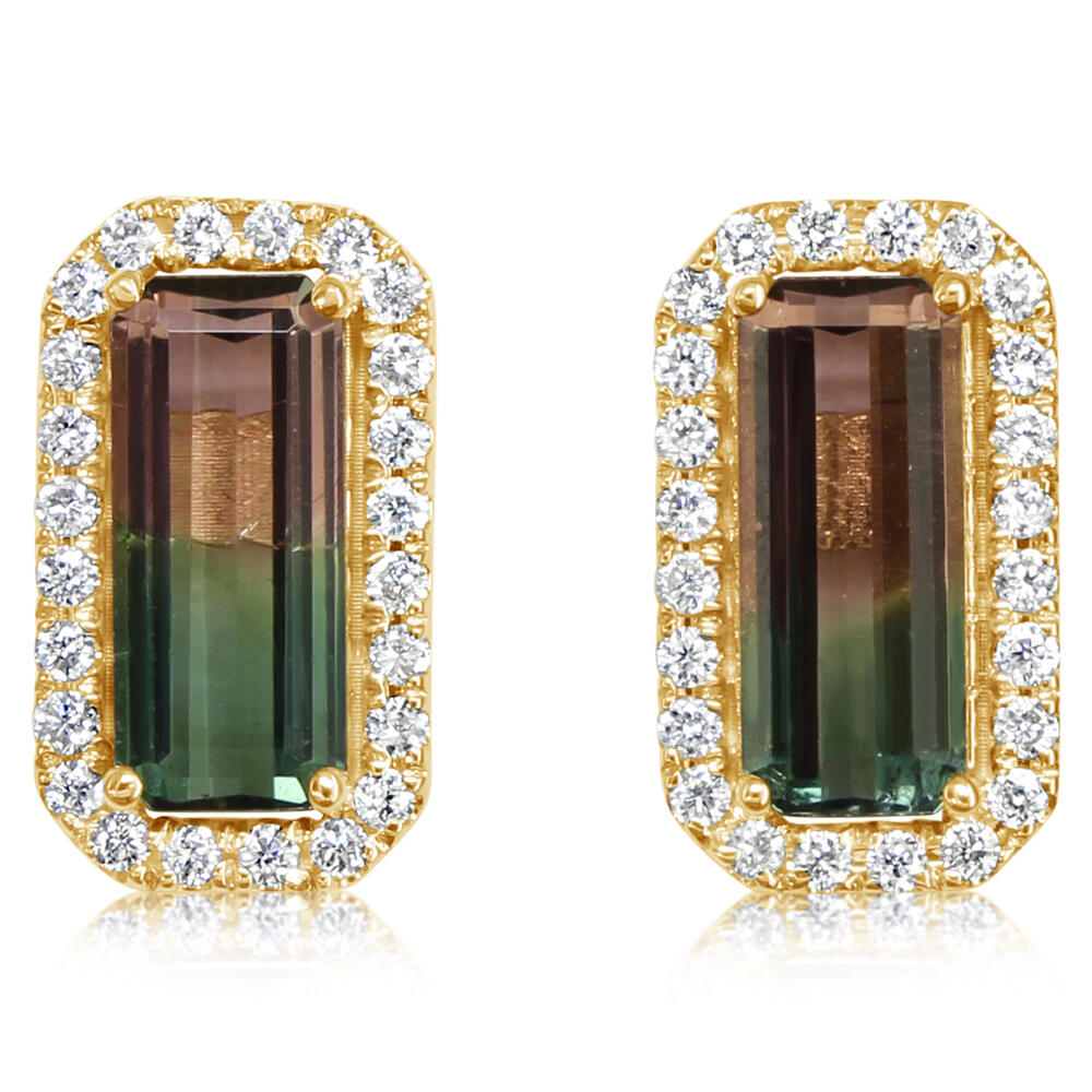 14K Yellow Gold Bi-Color Tourmaline/Diamond Earrings. This is a one of a kind piece. Total gem weight: 1.19 ct.
