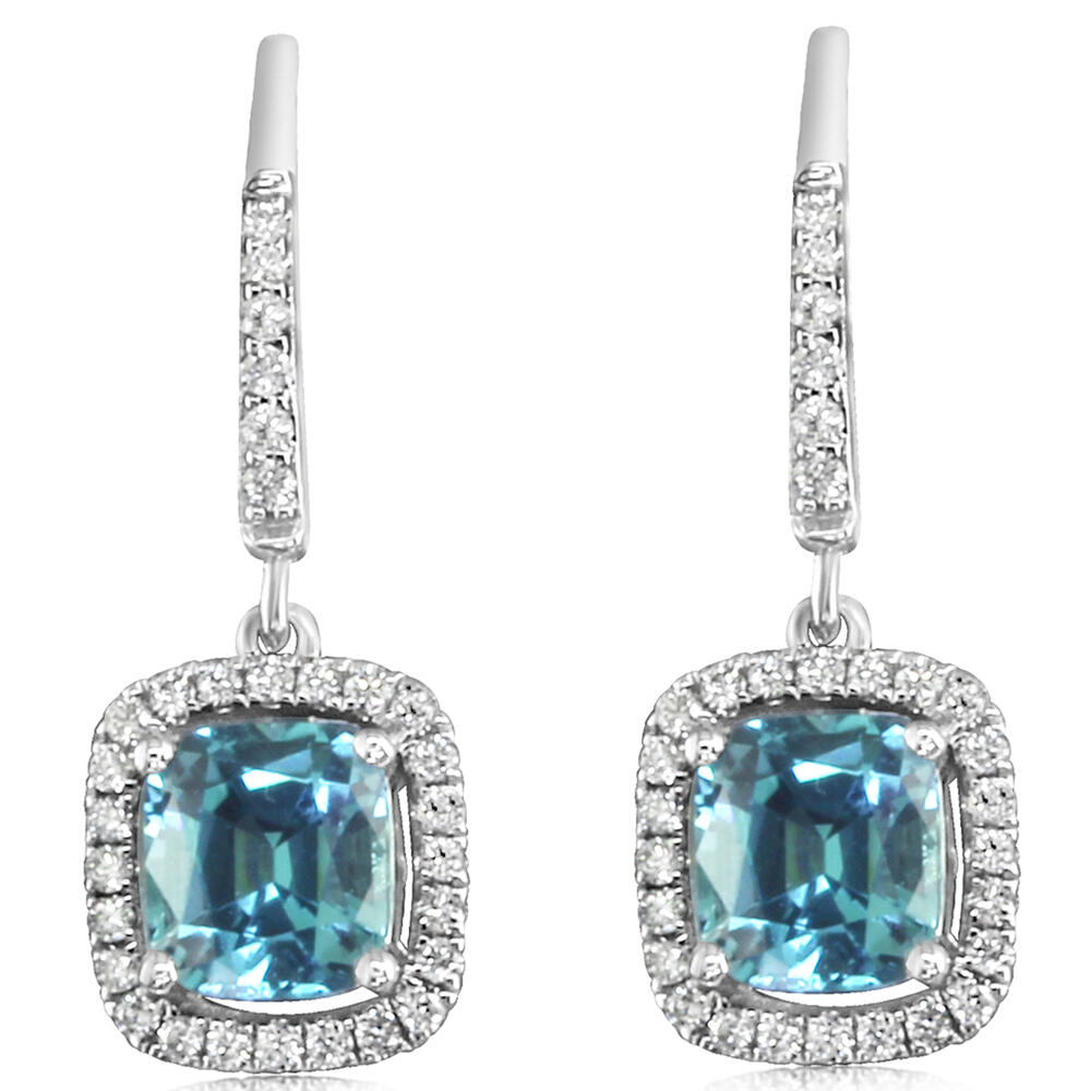14K White Gold Lagoon Tourmaline/Diamond Earrings. This is a one of a kind piece. Total gem weight: 1.98 ct.