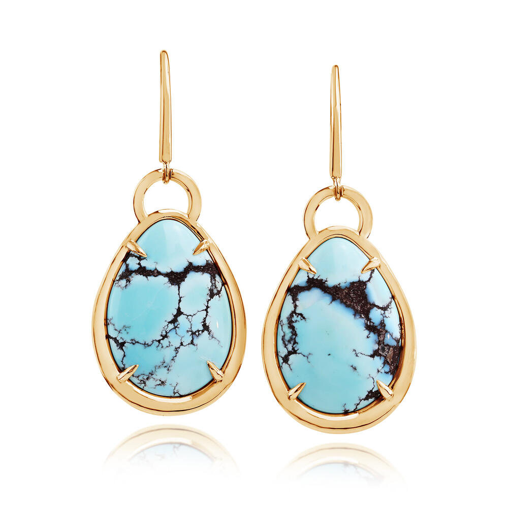 14K Yellow Gold Kazakhstan Turquoise Earrings. This is a one of a kind piece. Total gem weight: 10.93 ct.