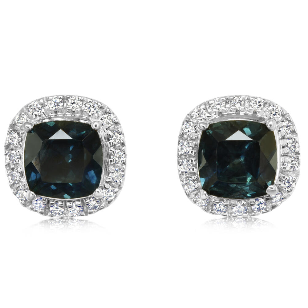 14K White Gold Montana Sapphire Earrings. Total gem weight: 2.05 ct.