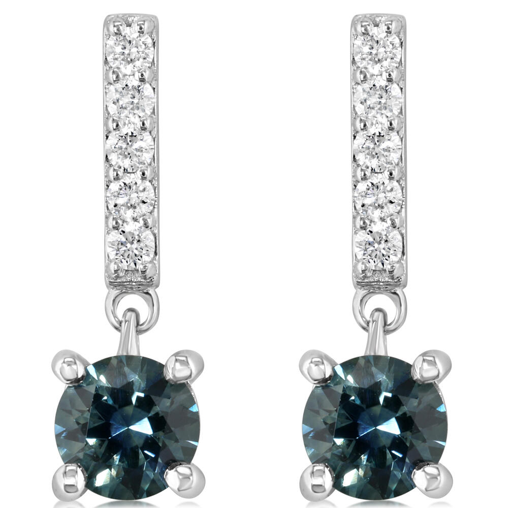 14K White Gold Montana Sapphire/Diamond Earrings. Total gem weight: 1.00 ct.