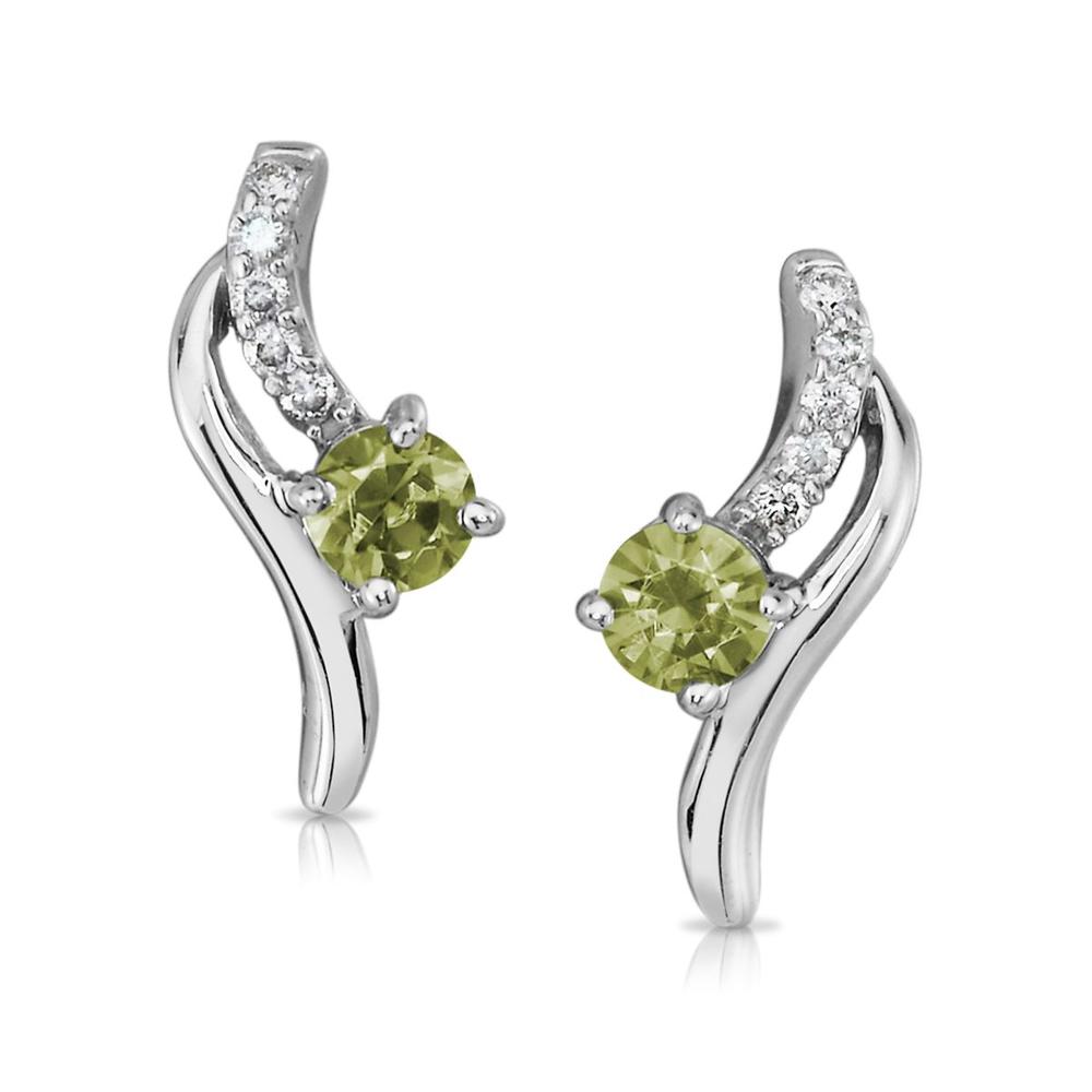 14K White Gold Peridot/Diamond Earrings. Total gem weight: 0.52 ct.