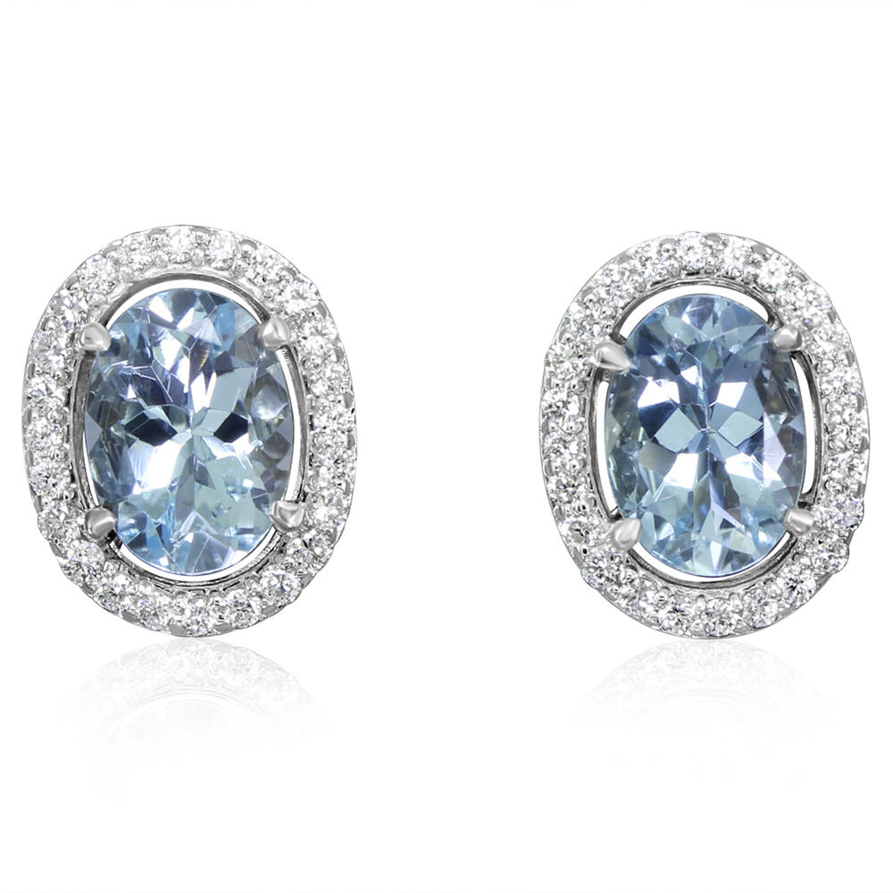 14K White Gold Aquamarine/Diamond Earrings. Total gem weight: 1.50 ct.