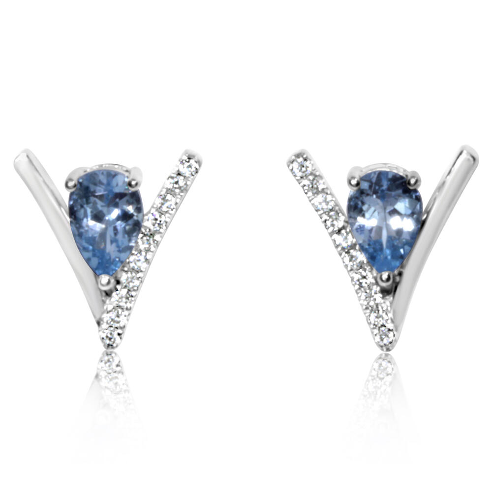 14K White Gold Aquamarine/Diamond Earrings. Total gem weight: 0.70 ct.