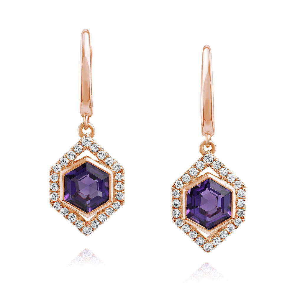 14K Rose Gold Amethyst/Diamond Earrings
